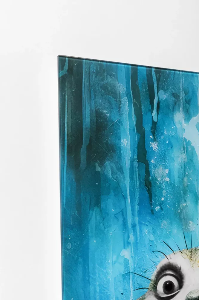 Färgstark glastavla med tre glada surikater. Tryckt på härdat säkerhetsglas – ett lekfullt blickfång för alla rum.