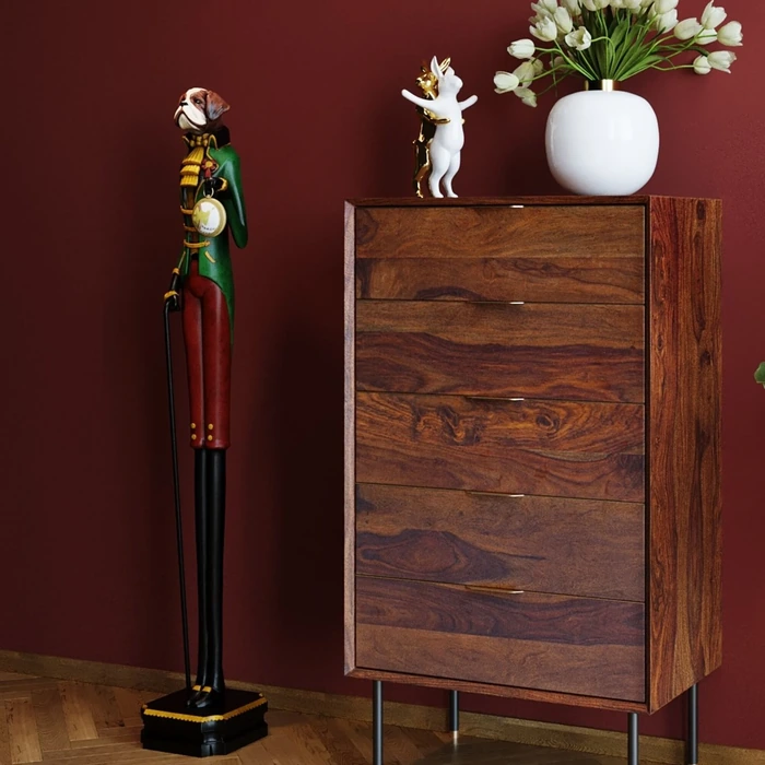 Golvklocka Gentleman Hund kombinerar funktion med ett lekfullt uttryck. Den eleganta hundfiguren bär ett klassiskt fickur som fungerar som klocka – en iögonfallande pjäs som lyfter både hall, vardagsrum och kontor. Detaljrik ytbehandling och robust material ger ett kvalitativt intryck.