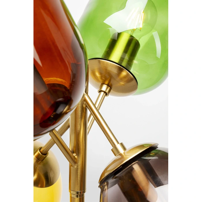 Golvlampa Balloon Dance 160 cm är en skulptural och dekorativ lampa där fyra glaskupor i harmoniska färgtoner skapar ett varmt och atmosfäriskt ljus. Den mässingsfärgade stommen i galvaniserat stål ger lampan en exklusiv karaktär och gör den till ett effektfullt blickfång i rummet.