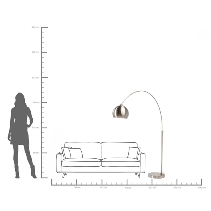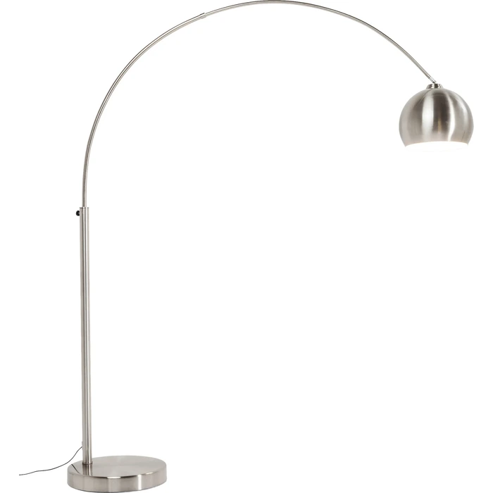 Golvlampa Lounge Glob krom 175 cm är en modern och stilren bågformad golvlampa med en rund skärm i silverfärgad stål. Den generösa höjden och den svängda formen ger lampan ett elegant uttryck som passar perfekt vid soffa, fåtölj eller matgrupp där du vill skapa ett mjukt och stämningsfullt ljus.