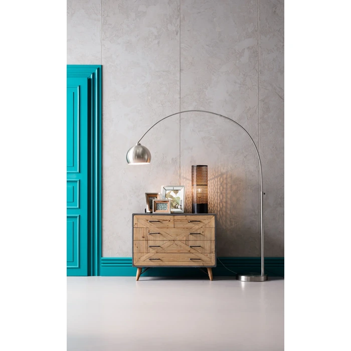 - Modern bågformad golvlampa i krom