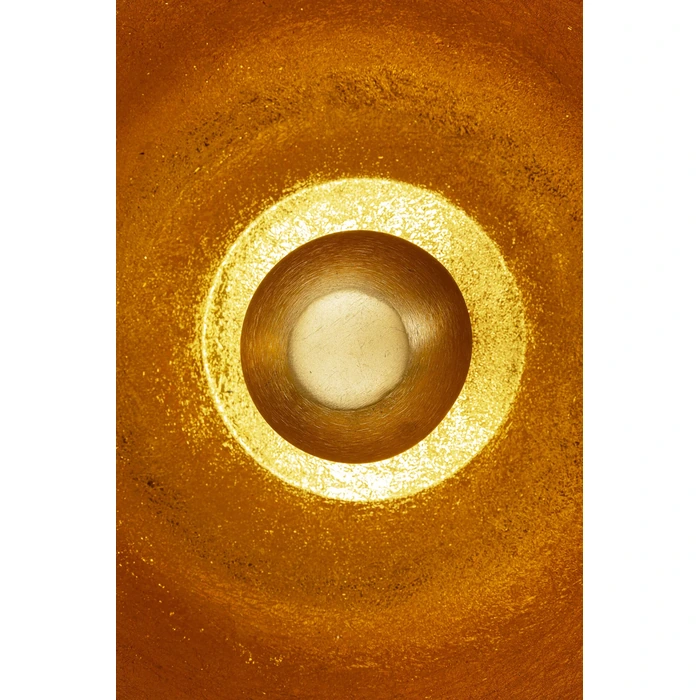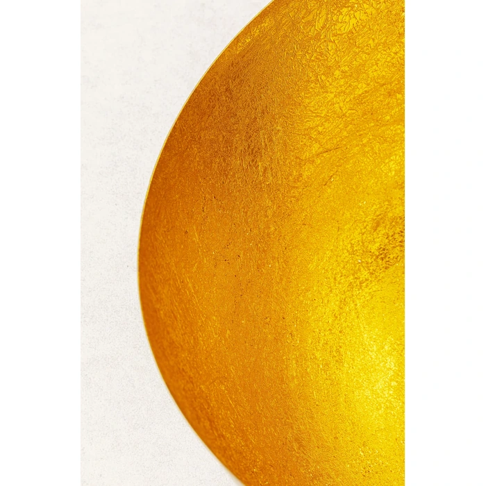 Golvlampa i guldtonad metall med rund skärm Ø35 cm – varm belysning och mjukt, skulpturalt uttryck.