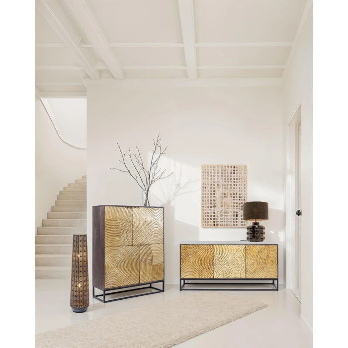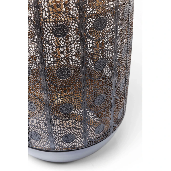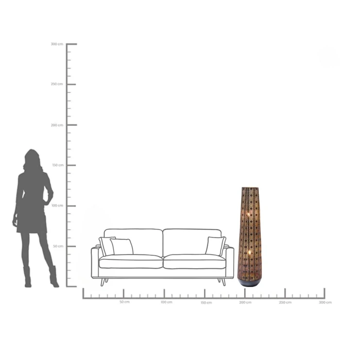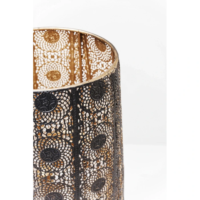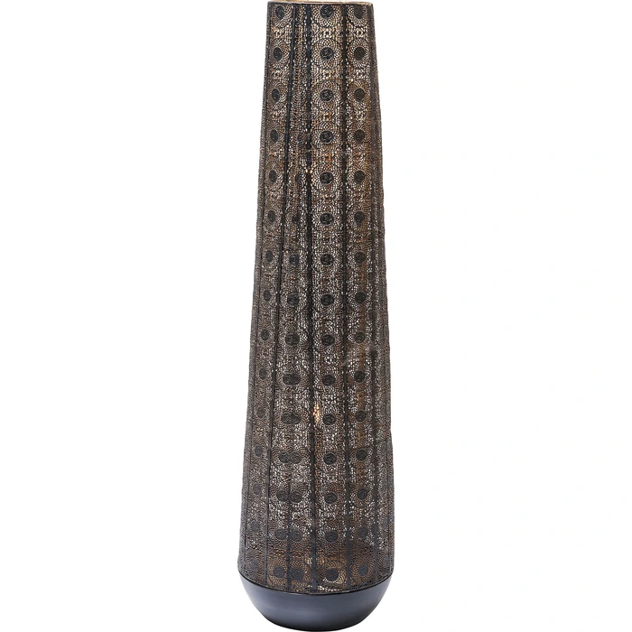 Orient Cut är en stämningsskapare som sprider ett varmt, grafiskt ljus genom sin perforerade stålkupa. Den höga, koniska silhuetten gör lampan till ett naturligt blickfång i vardagsrum, sovrum eller hall, samtidigt som den tar minimalt med golvyta. Perfekt som komplement till takbelysningen när du vill skapa djup och ombonad kvällskänsla.