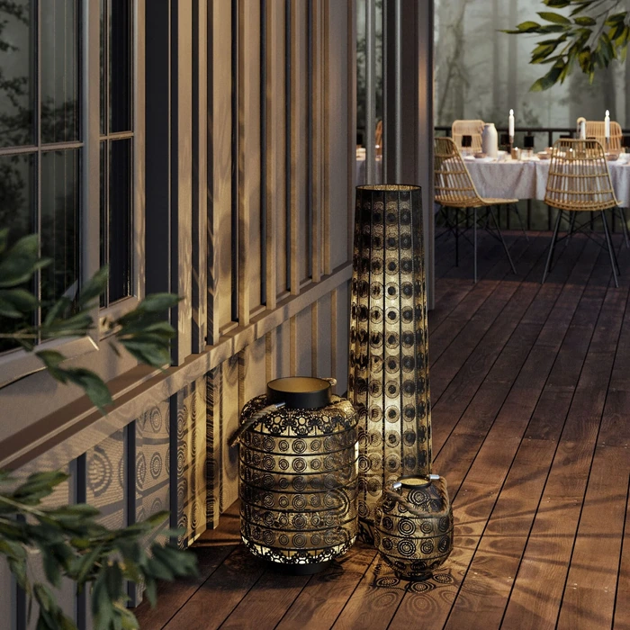 - Perforerad skärm som ger vackra ljusmönster