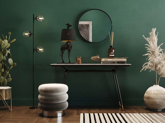 Golvlampan ger en dekorativ ljussättning till rummet