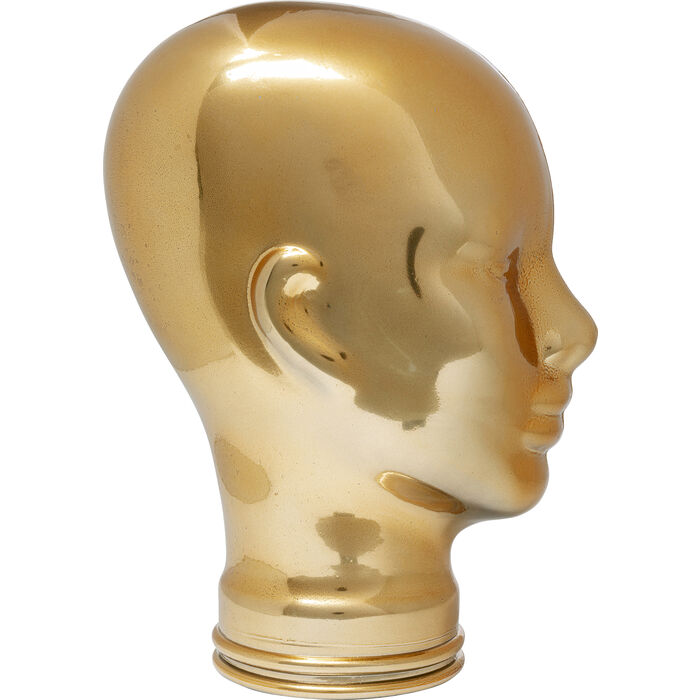 Det här hörlurstället liknar inget annat och blir en riktig eye-catcher i hallen - för förvaring av dina lurar, kepsen, hatten eller mössan. Huvudet finns i flera snygga färger och detta i guldfinish är den senaste nyheten bland hörlurstativen.