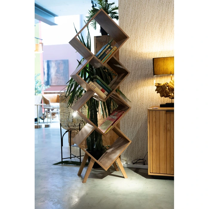 Geometrisk form möter designkonst – denna hylla skapar liv och rörelse i varje inredningskoncept. Med sina asymmetriskt placerade fack och skulpturala siluett blir den ett spännande blickfång på väggen och leker skickligt med proportioner och perspektiv. Den fungerar som en elegant scen för favoritböcker, konstobjekt eller stilrena inredningsdetaljer och ger rummet en personlig karaktär. Hyllan kommer särskilt till sin rätt i moderna interiörer där den kombineras med dämpade väggfärger, rena linjer eller dekorativa lampor. Den kan även placeras fristående som en luftig rumsavdelare – en perfekt balans mellan funktion och estetik som tillför både ordning och uttryck i hemmet.