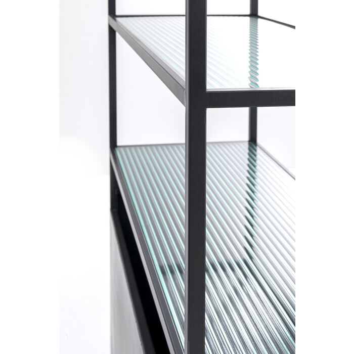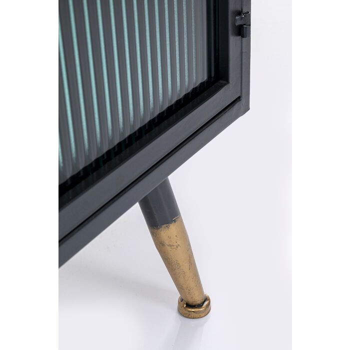- Modern design: det räfflade glaset, mässingshandtagen och fötterna förfinar denna möbel.