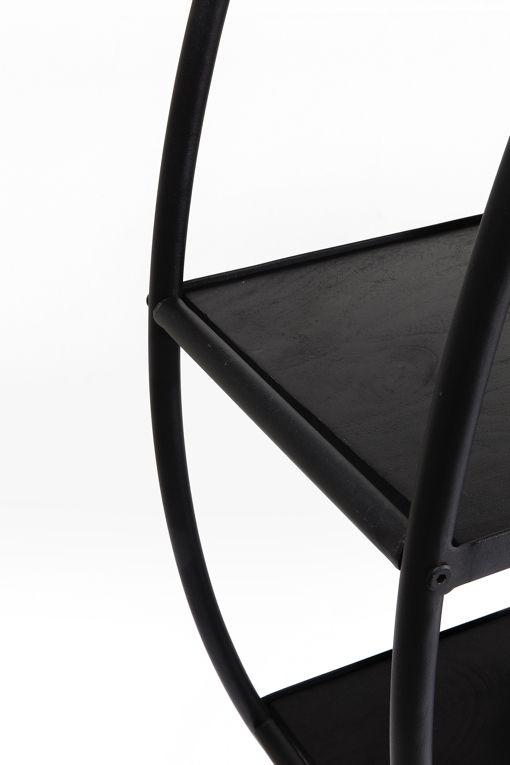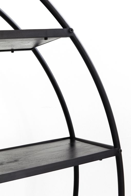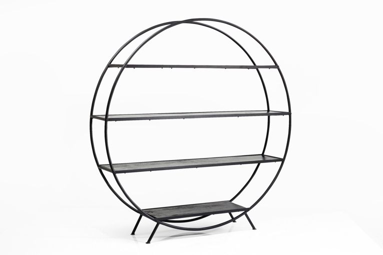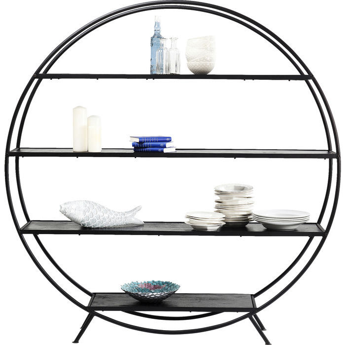 Denna stora runda hylla som vi kallar Out of the Box är här för att inspirera till att tänka annorlunda när det gäller bokhyllor och hyllor för exponering av inredningsdetaljer. Låt hyllan vara väggens läckraste dekor! Fyll den med magasin, stora vackra böcker och prydnadsföremål. Eller varför inte låta det vara en öppen hylla för glas och porslin i matrummet? Hyllan är robust med ram i svart lackad stål och hyllor i svartbetsat, lackat trä.