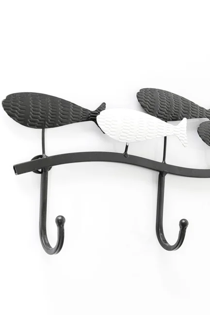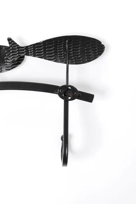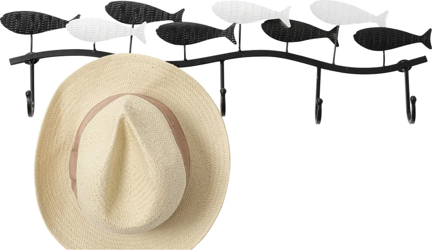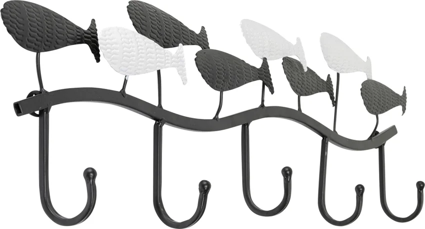 Med sina mått på 62 cm och en maxkapacitet på 5 kg, erbjuder denna horisontella klädhängare både stil och funktion. Tillverkad av lackerat stål och redan monterad för enkel installation, passar den perfekt på väggen. Den svartvita fiskdesignen ger ett sofistikerat och iögonfallande intryck.