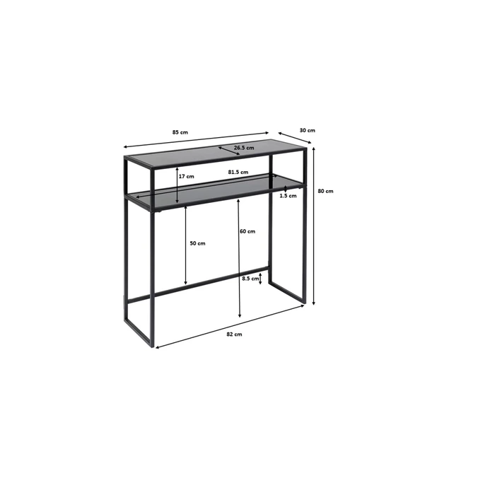 Konsolbord Loft Greige 80x85 cm är ett stilrent konsolbord i stål och glas som kombinerar modern design med praktisk funktion. Det smala formatet gör det perfekt som avlastningsbord i hallen, bakom soffan eller som dekorativ yta i vardagsrummet. Den eleganta greige färgen tillsammans med glasplanen skapar ett luftigt och sofistikerat uttryck.Den minimalistiska designen och materialkombinationen av pulverlackerat stål och härdat säkerhetsglas ger ett modernt och tidlöst intryck. Glaset förstärker känslan av rymd medan den matta metallytan skapar stabilitet och karaktär. Konsolbordet passar enkelt in i olika inredningsstilar – från skandinavisk minimalism till industriella och urbana miljöer.