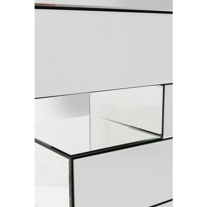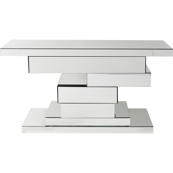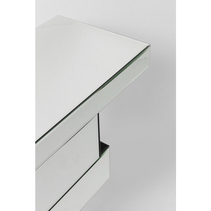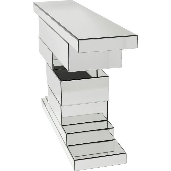 Ett konsolbord utöver det vanliga - avskalat men samtidigt intressant för dig som söker stilren, elegant design. Konsolbordet är helt täckt med fasettslipade spegelglas och har två dolda lådor med tryckfunktion. Bordet monteras.