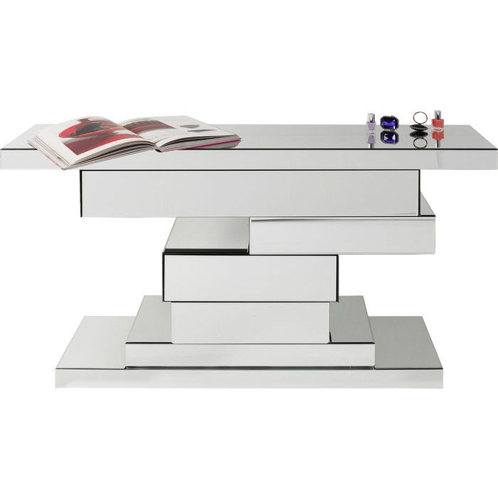 Konsolbord klädd helt i fasettslipat glas - dold lådor för förvaring