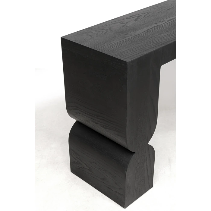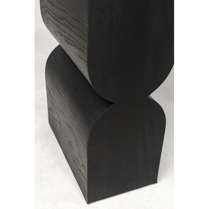 Elegant konsolbord med organisk form och svart eschfanér som ger ett grafiskt men mjukt uttryck. Den skulpturala siluetten gör sig lika bra i hallen som bakom soffan eller under en spegel.