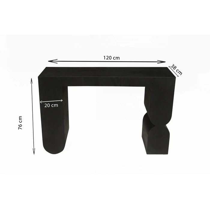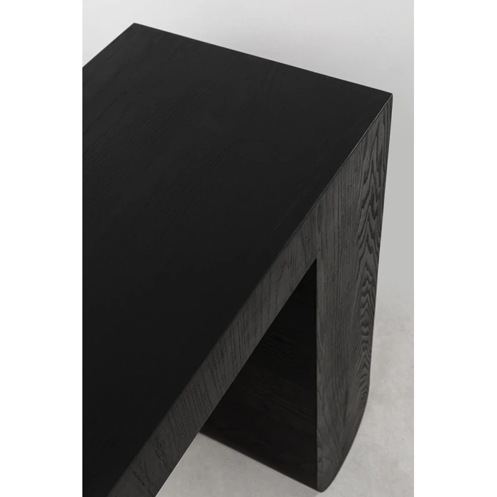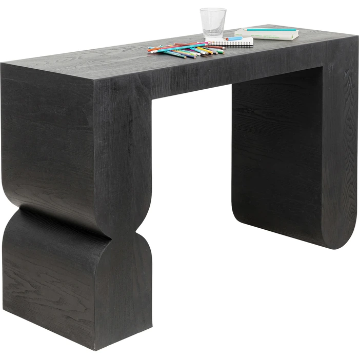 Skulpturalt konsolbord i svart eschfanér med mjuka kurvor. Färdigmonterat och perfekt som avlastning i hall eller vardagsrum.
