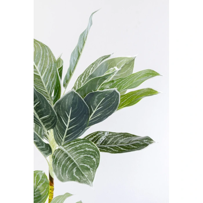 Med sina fylliga, mönstrade blad ger denna kalatea en naturlig känsla utan vattning. Placera i ett hörn för grön volym eller gruppera med andra konstväxter för ett lummigt intryck.