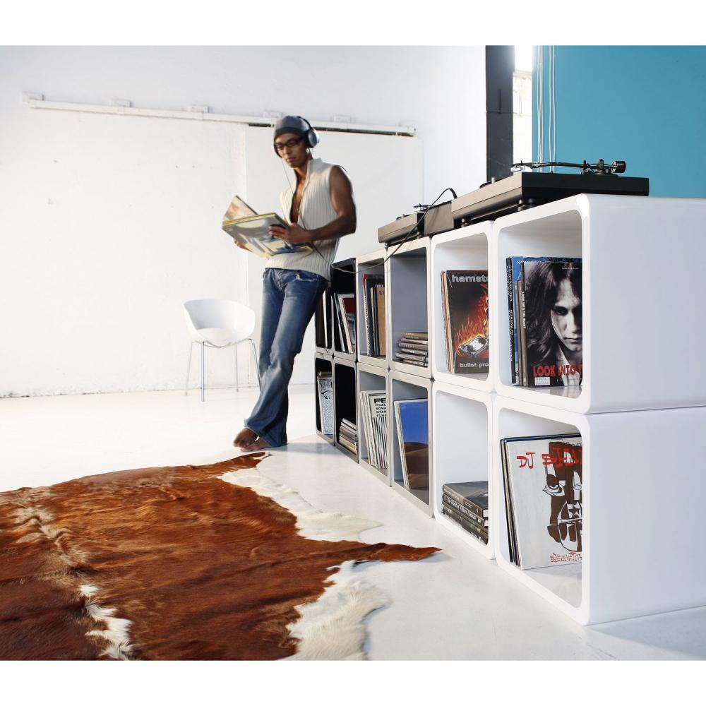 Kub som litet bord, sängbord eller hylla i blank vit finish. Kan användas var och en för sig eller i grupp om flera. Flexibelt - snyggt!