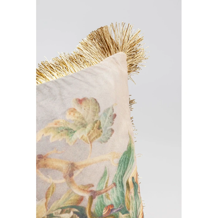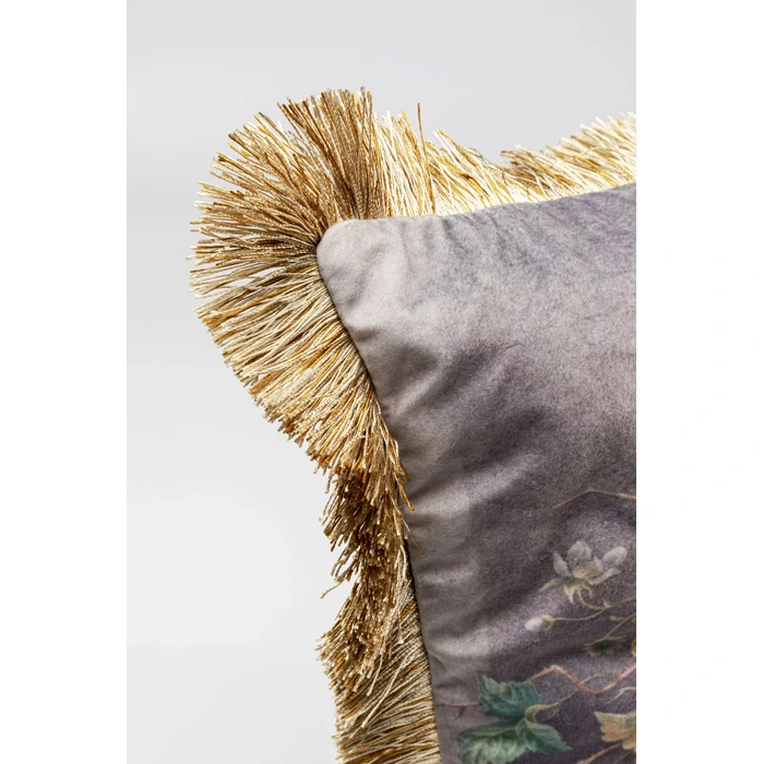 Den mjuka ytan i sammetstruktur och de dekorativa fransarna i guld skapar ett lyxigt uttryck som lyfter soffor, fåtöljer och sängar. Kudden kombinerar stil och funktion – ett konstnärligt blickfång som samtidigt erbjuder skön komfort.
