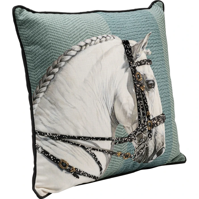 Dekorativ kudde med exklusivt hästmotiv och gnistrande strassdetaljer.