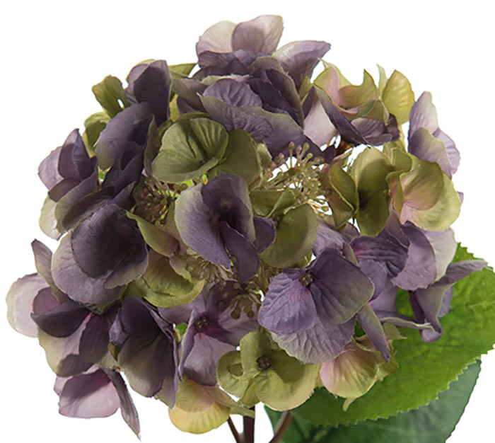 Den här konstgjorda kvisten av lila hortensia är mycket välgjord med ett äkta utseende. Hortensia är en tacksam blomma som inredningsdetalj i en vas eller liggandes på ett vackert fat. Vi väljer våra konstväxter med omsorg och de vi vet ger en naturtrogen känsla med kvalitet och utseende. Mått: höjd 45 cm.