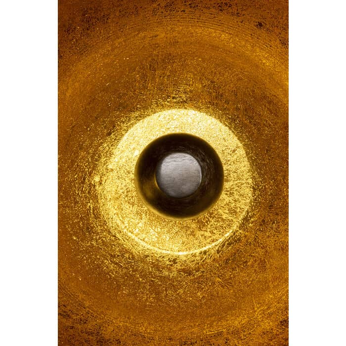 - En antracitgrå armatur med en gyllene insida som står ledigt på bordet eller på golvet.
