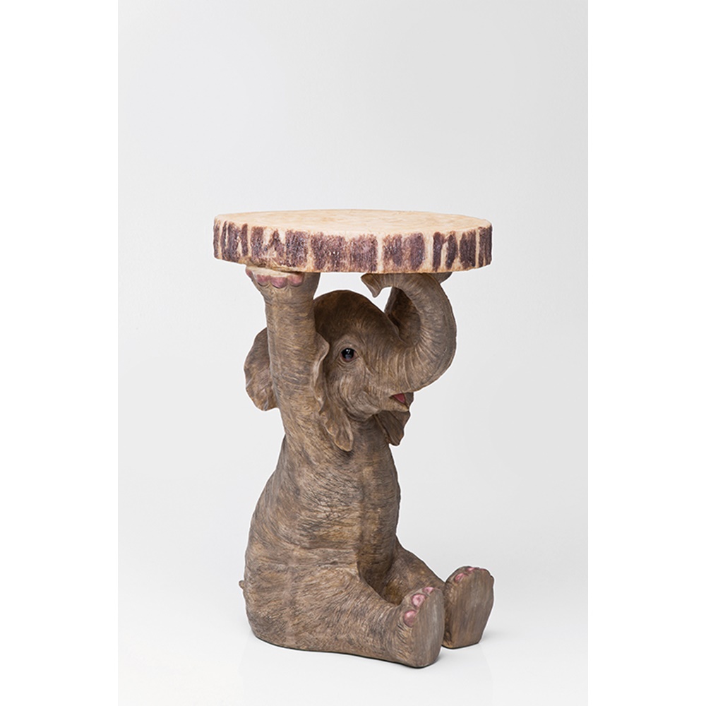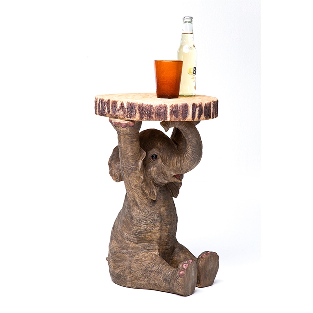 Litet charmigt bord med en elefant som håller upp bordsskivan. Elefantbordet är mycket välgjort med naturtroget utseende och som bord blir det både en kul och trivsam dekor men också med en funktion som soffbord, nattduksbord eller kanske som avlastningsbord på gästtoaletten.