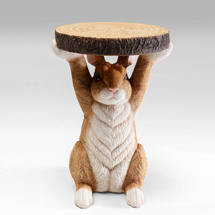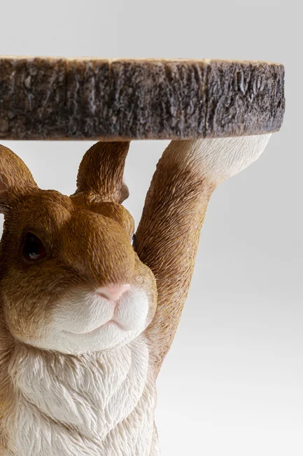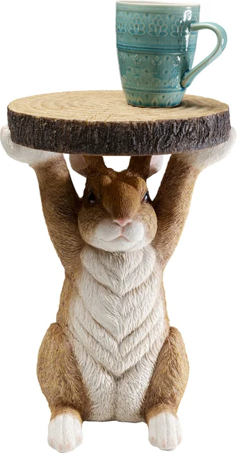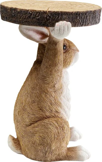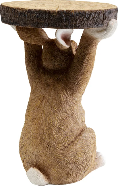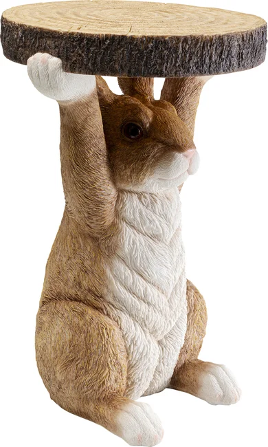 Charmigt sidobord i form av en kanin med träliknande bordsskiva. Perfekt som avlastningsbord eller nattduksbord.