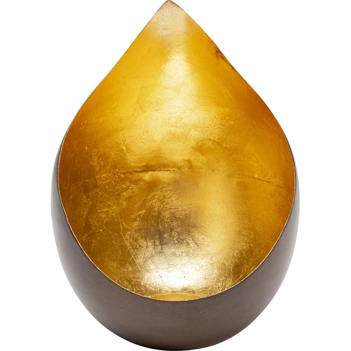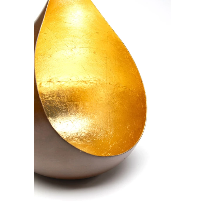 Droppformad lykta med bronsfärgad utsida och gyllene insida som ger ett mjukt ljusspel.