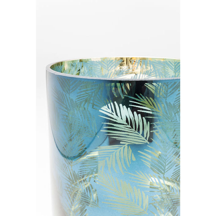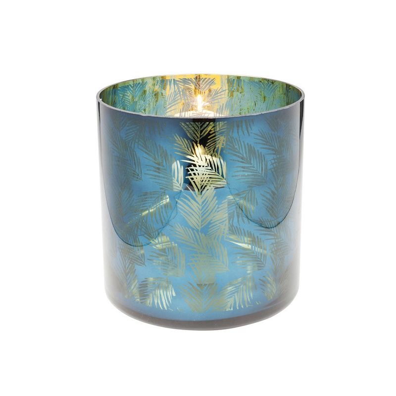 Ljuslykta i grönblått glas med palmblad i guldfinish - fin ljuseffekt