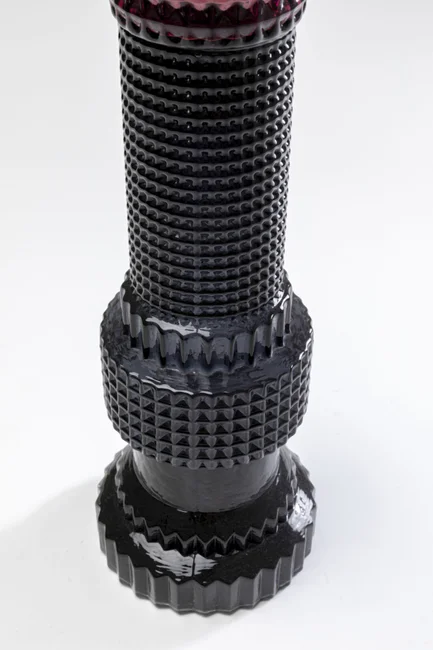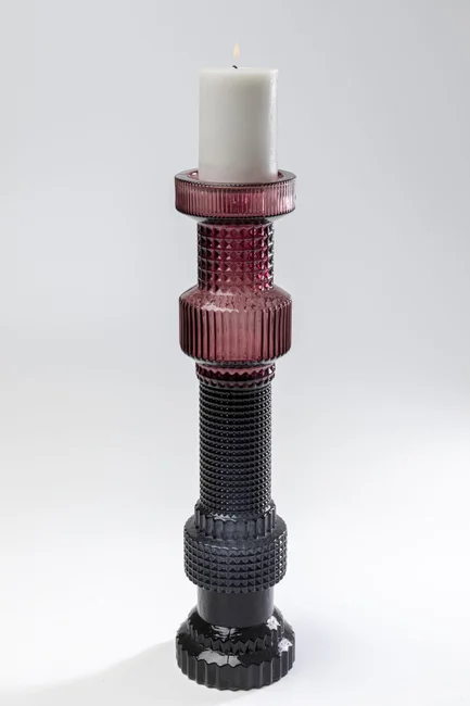 - Stor ljushållare av färgat glas i mörkrosa och svart, 49 x 12 x 12 cm (H/B/D)