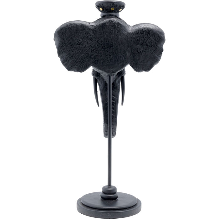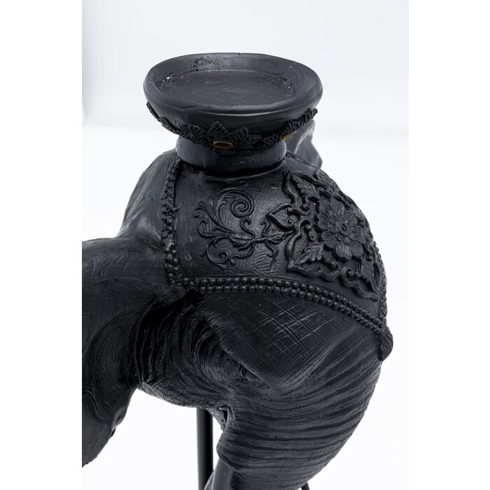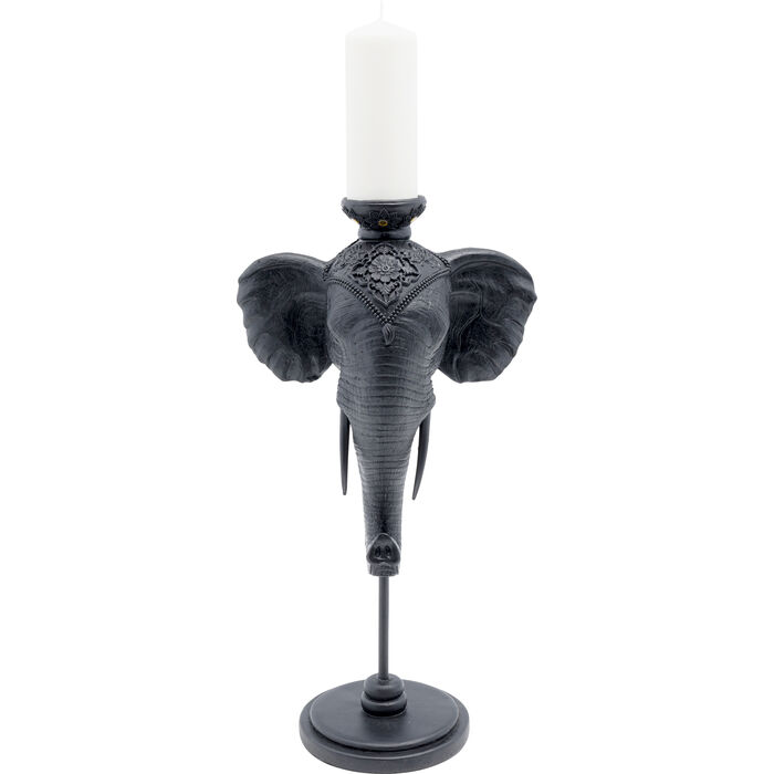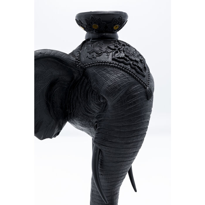 Ståtlig och vacker ljusstake med elefanthuvud i svart