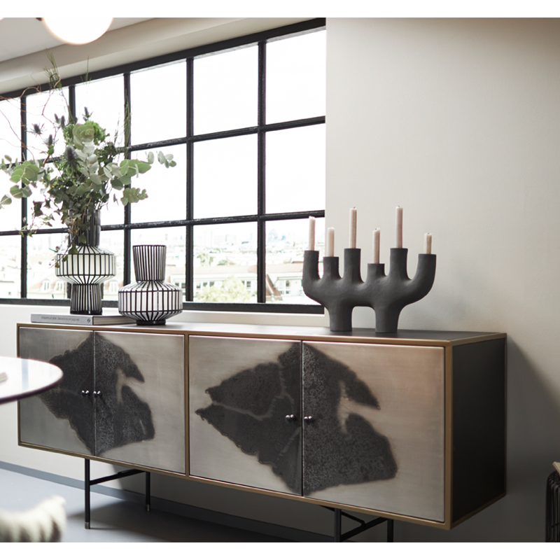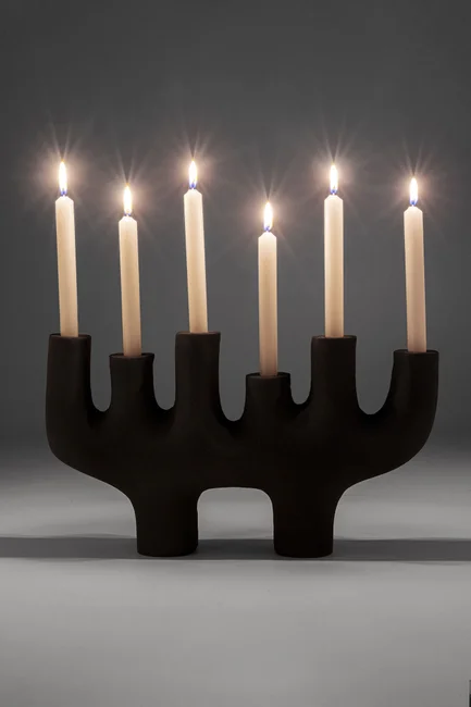 En modern ljusstake med modern design i svart. Med plats för 6 stycken stearinljus/dopljus.