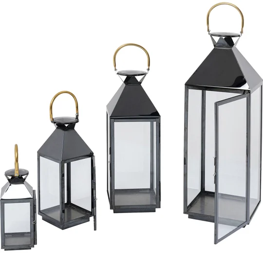 - Handgjorda: en dekorativ uppsättning av fyra handgjorda svarta lyktor.