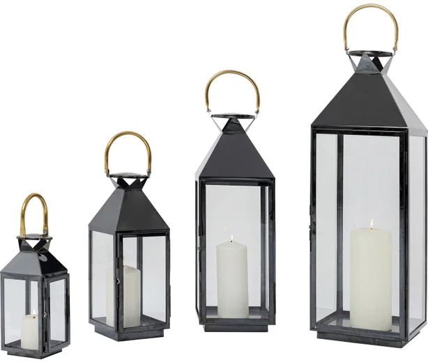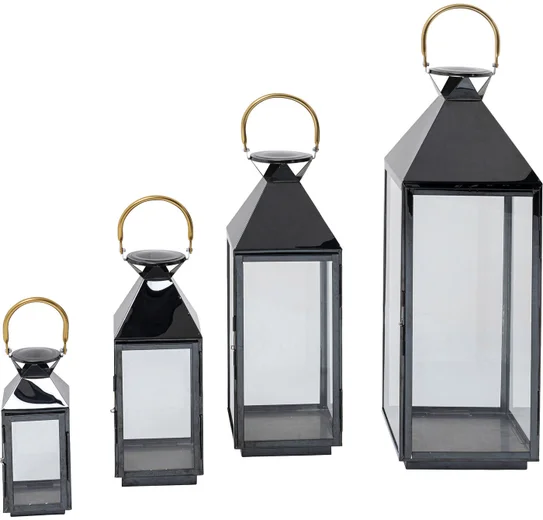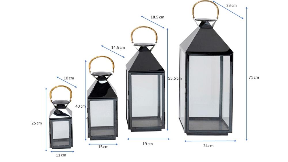 - Set med 4 stycken svarta ljuslyktor i olika höjder: 25 cm, 40 cm, 55.5 cm och 71 cm.