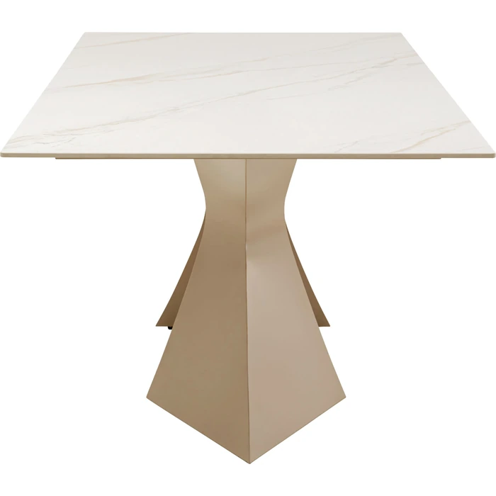 Matbord Gloria greige 200×100 cm är ett elegant och generöst matbord som kombinerar modern design med hög funktionalitet. Den glaserade keramiska bordsskivan i vit marmorlook är både slitstark och lätt att rengöra, samtidigt som det skulpturala underredet i greige ger bordet ett exklusivt och modernt uttryck.