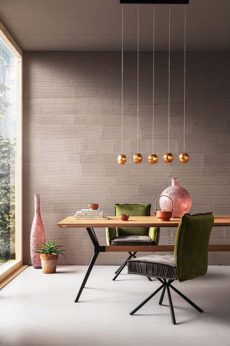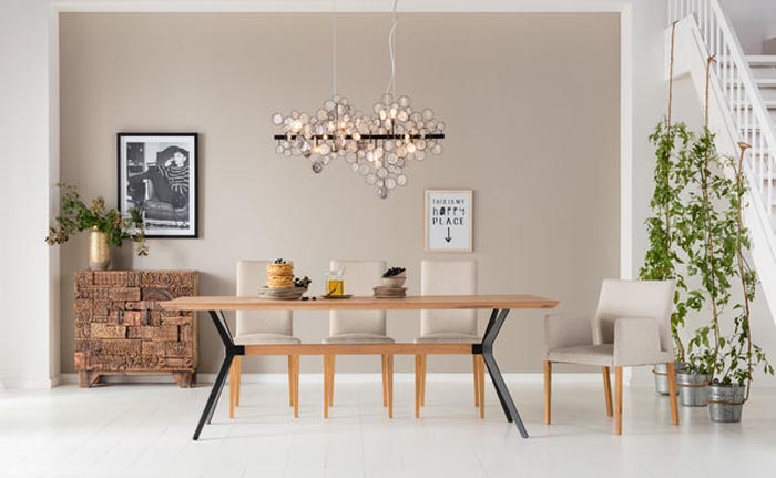 Matbord i stilren, modern design och bordsskiva i massiv ek