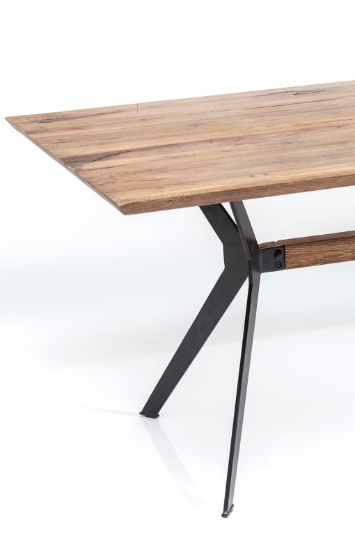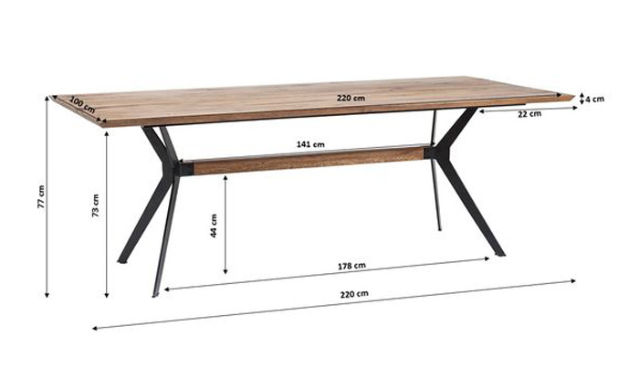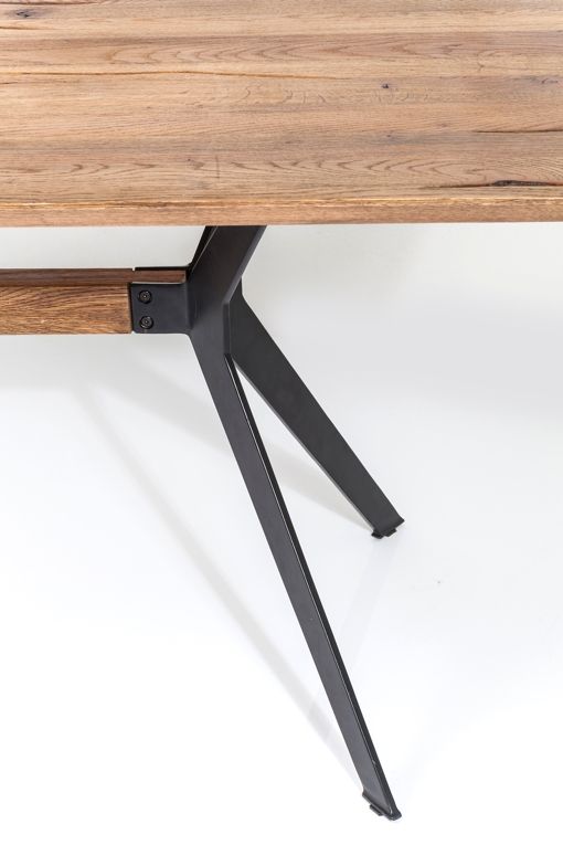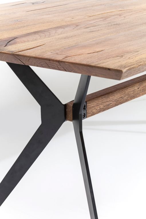 Ett stort matbord i modern, stilren design med med bordsskiva i oljad ek och svart underrede i smäcker form. Bordsskivan har en naturlig, rustik yta där träets ådring och karaktär framhävs. Matbordet rymmer ledigt upp till 8 personer. Material: Underrede i pulverlackat stål och bordsskiva i massiv oljad ek. Mått: höjd 77 x längd 220 x bredd 100 cm. Vikt: 78 kg. Bordet finns även i valnöt.