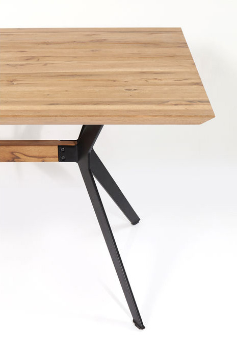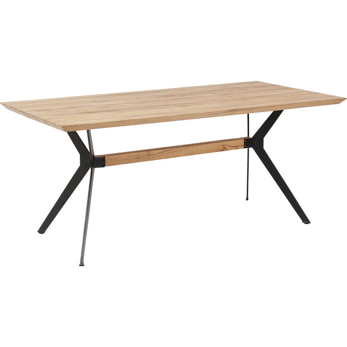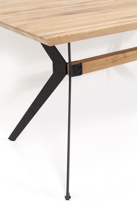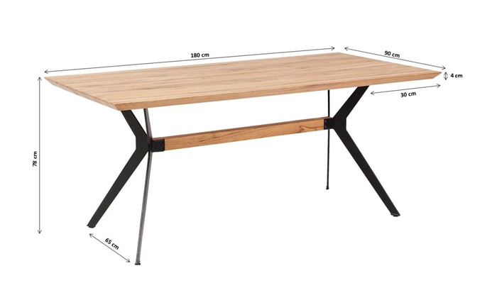 Ett gediget matbord med bordsskiva i oljad ek och ett snyggt svart underrede i smäcker design. Varje bordskiva är unik med fin rustik patina och ådring. Bordet ger gott om utrymme för 6 personer. Generellt så räknar man 60 cm per plats. Material: Underrede i pulverlackat stål och bordsskiva i massiv oljad ek. Mått: höjd 77 x längd 180 x bredd 90 cm. Vikt: 55 kg. Underredet monteras och verktyg medföljer.