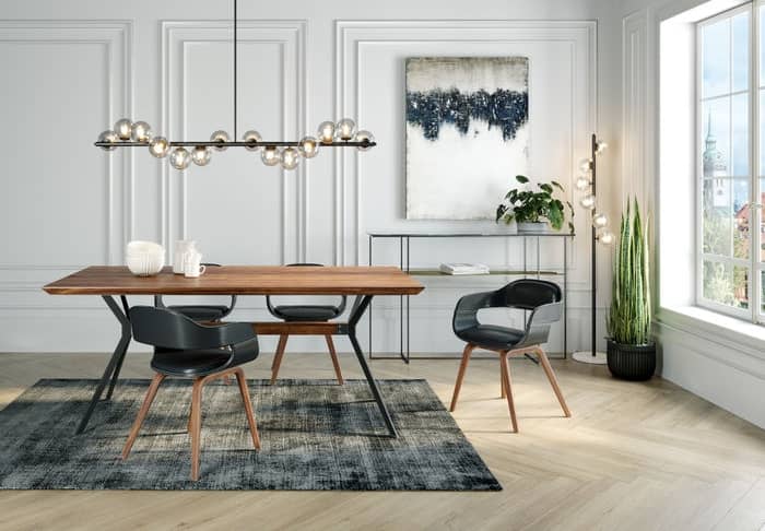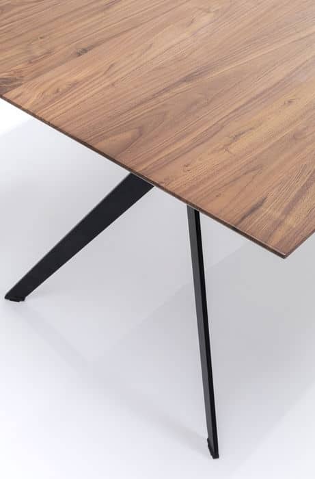 Ett mycket vackert och gediget bord med bordsskiva i massiv valnöt och ett underrede i svart stål med stilfullt inslag av valnöt. Varje bordskiva är unik med valnötens naturliga skiftningar och en neutralt brun ton som känns exklusiv och är lätt att matcha i många inredningar. Bordskivan är helt i massivt trä, 4 cm vilket framhävs fint i de fasade kanterna. Bordet passar både som matbord och mötesbord och ger gott om utrymme för 6 personer. Generellt så räknar man 60 cm per plats.
