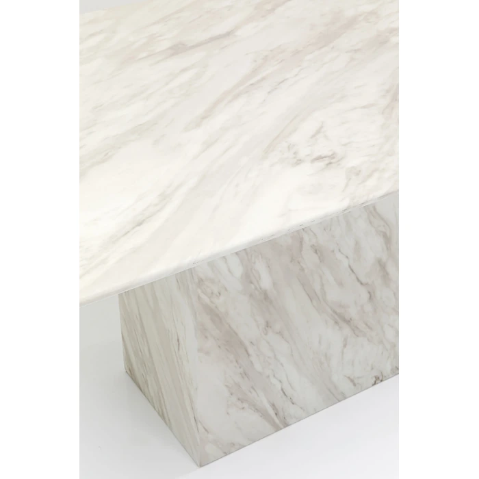 Matbord Skulptur – Marmor är en iögonfallande mittpunkt med sin kubiska sockel och helgjutna marmorkänsla. Den släta, fasade kanten ger ett exklusivt uttryck och den centrala pelaren frigör benplats runt bordet.