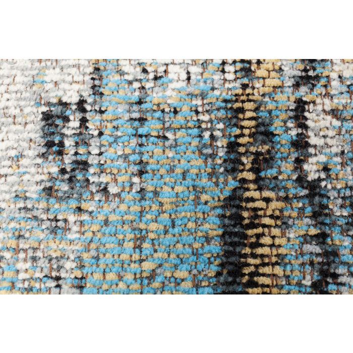 En stor vävd matta, 200 x 300 cm med ett motiv som även finns i tavlan Abstrakt i blått. Mattan har ett diskret men intressant mönster i en grå, blå och beige färgskala. Material: Mattans undersida 100% bomull, ovansida 90% bomull, 10% polyester. Mått: 200 x 300 x 1 cm.