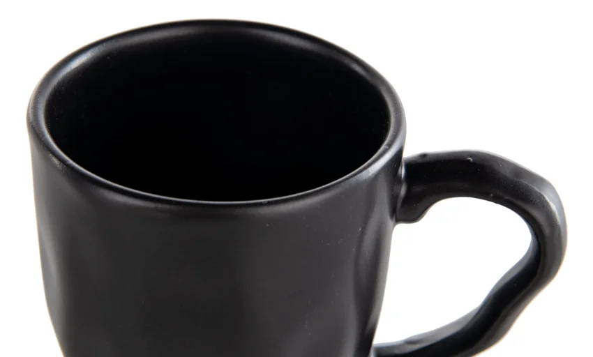 - Djupsvart kopp i populär keramisk stil och handgjord look
