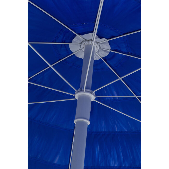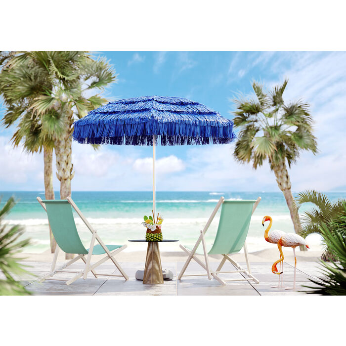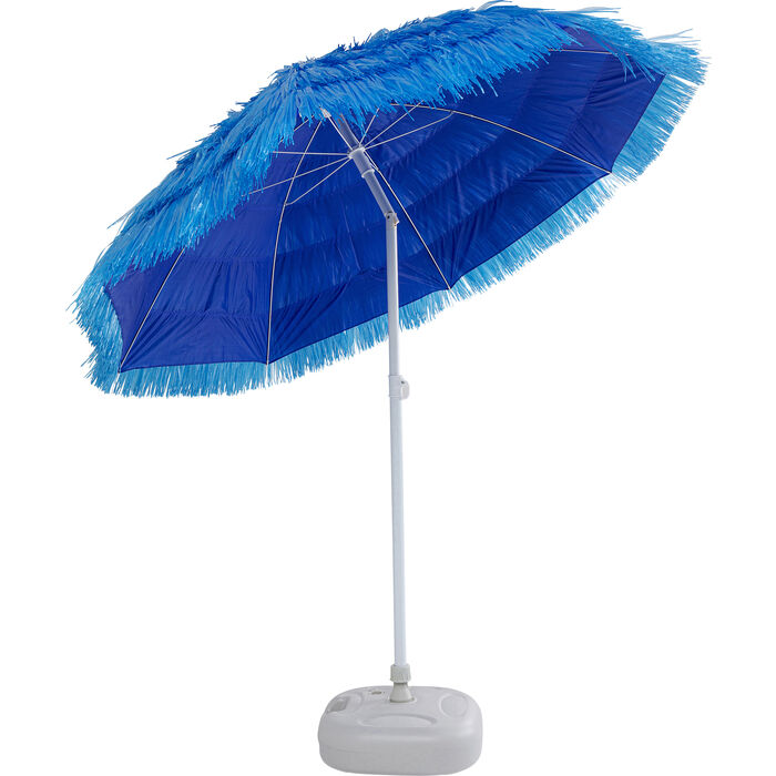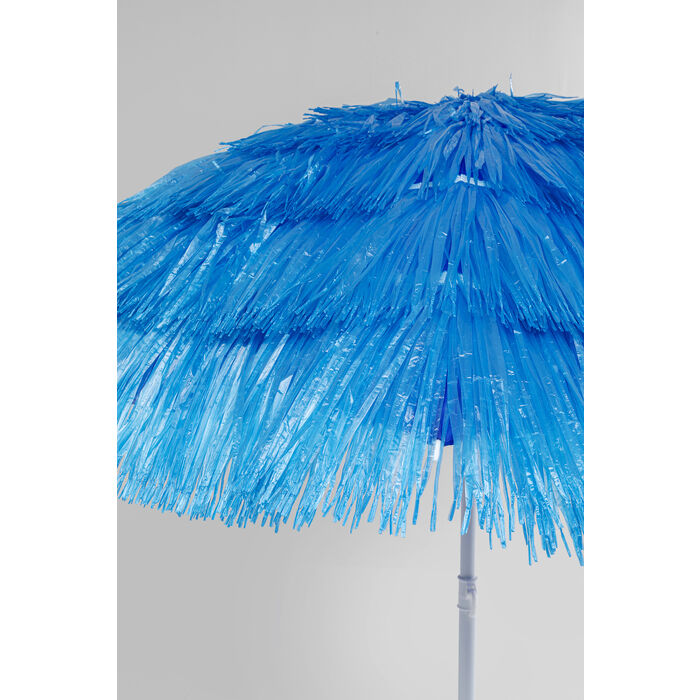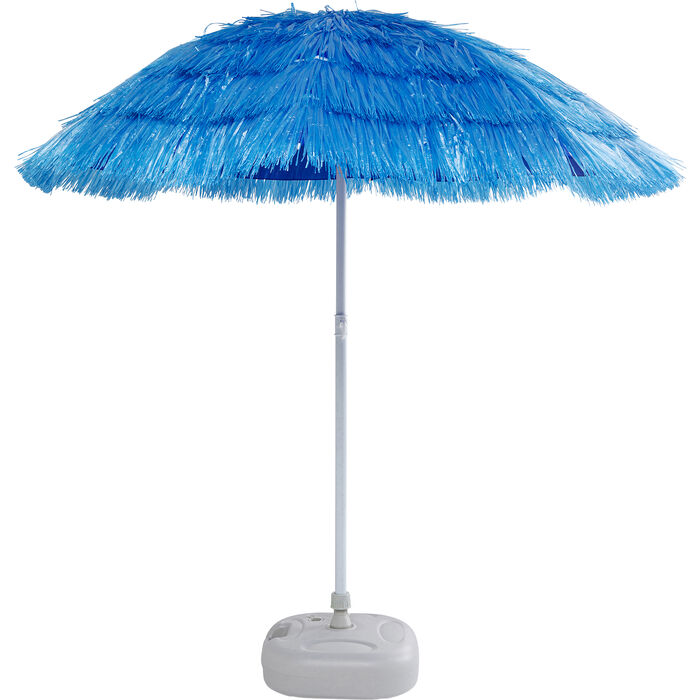 Ett läckert parasoll i klarblå färg som ger skugga i solgasset och skön paradis-stämning, på balkongen, terrassen och i trädgården.