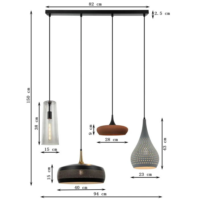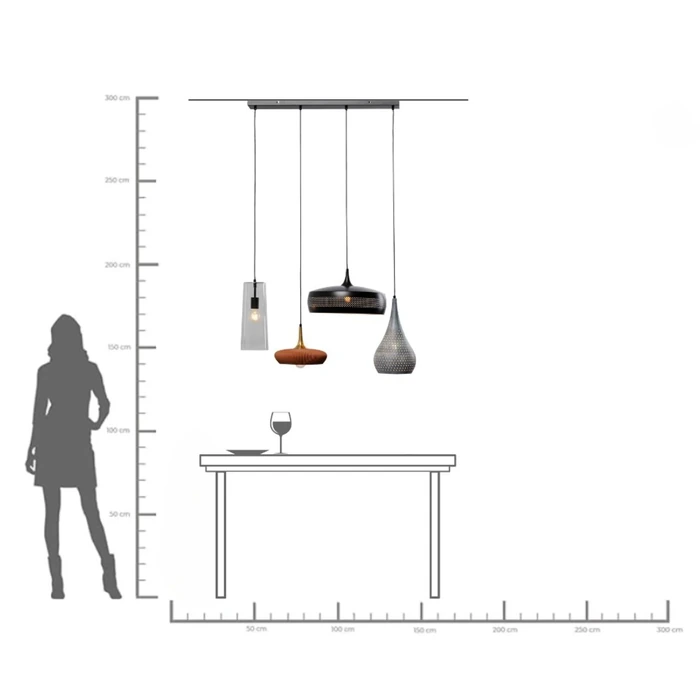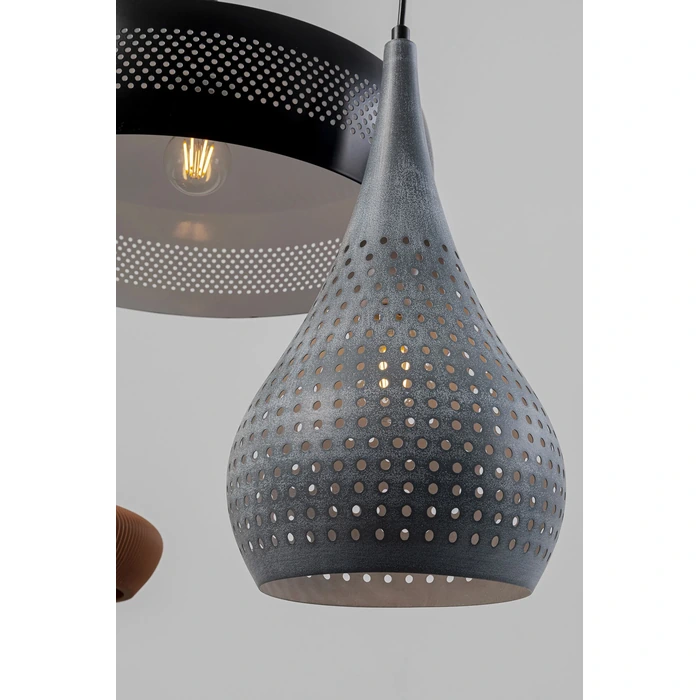 Pendel Melange Dinging är ett uttrycksfullt ljusobjekt som kombinerar fyra olika lampskärmar i en harmonisk och konstnärlig helhet. Varje skärm har sin egen form, yta och karaktär, vilket skapar ett levande spel mellan blanka och matta material och ger lampan ett djupfullt, designorienterat uttryck.
