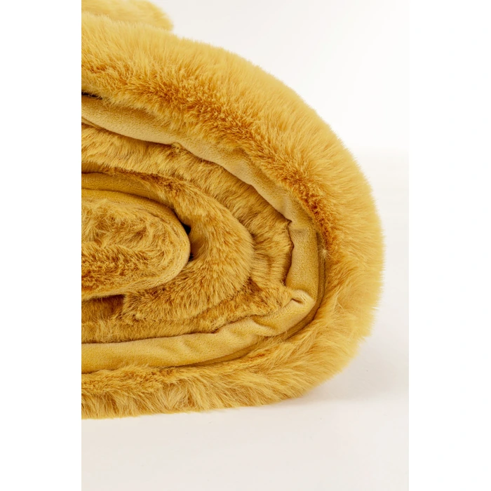 Lyxig supermjuk och stor pläd i gul nyans för soffan eller sängen.