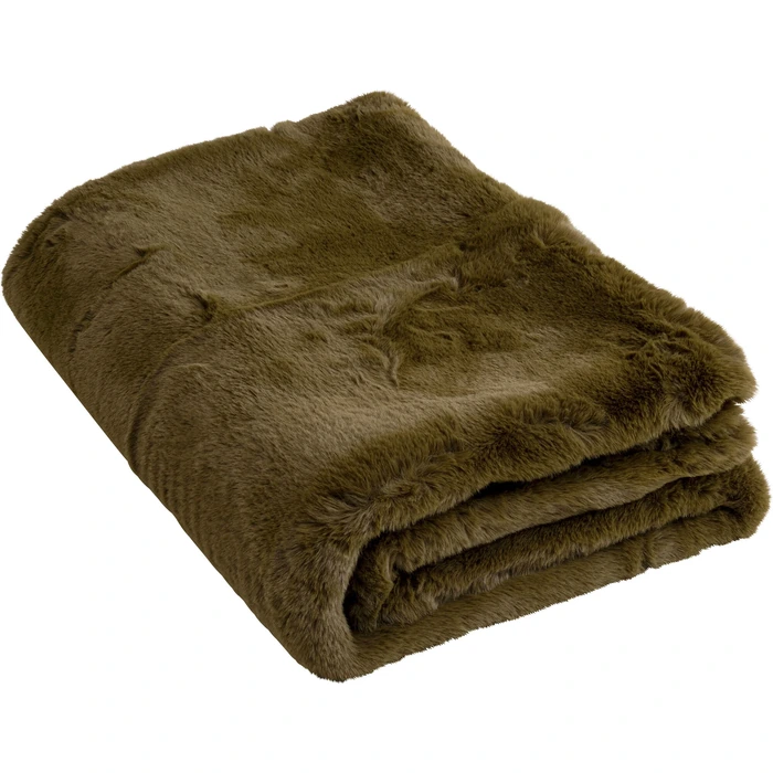 Lyxig supermjuk och stor pläd i olivgrön nyans för soffan eller sängen.