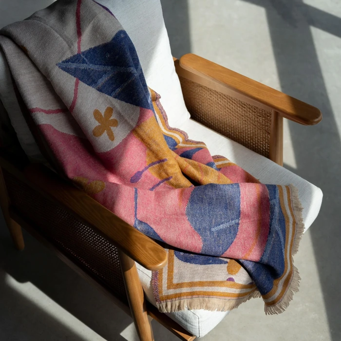 Pläd Retroblom kombinerar mjuk komfort med ett livfullt, retrodoftande blomtryck. Pläden är lätt att bädda med, skön att svepa om sig och fungerar lika bra som färgstarkt överkast som en mysig accent i soffhörnan.