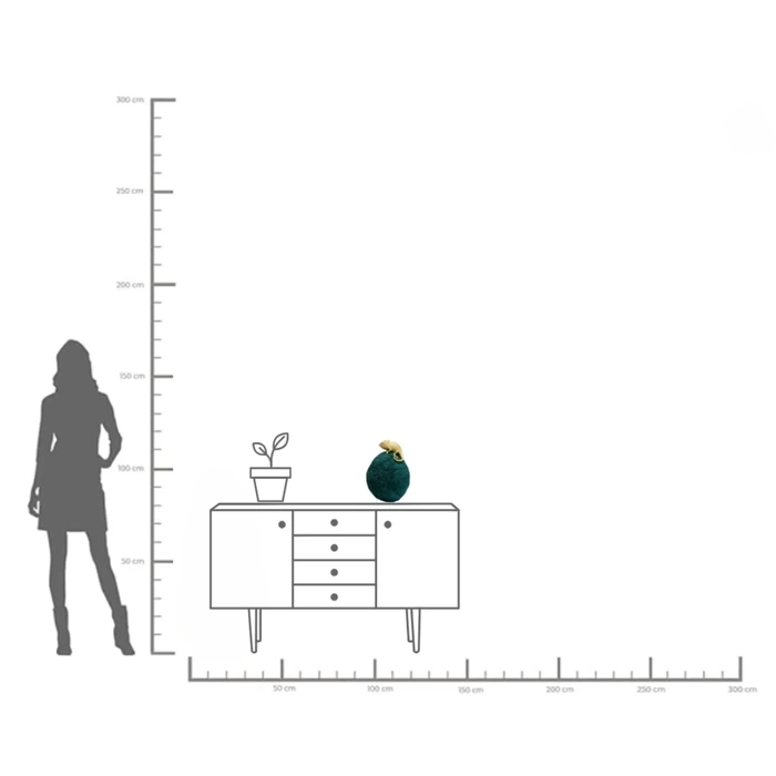 Den större varianten blir en tydlig mittpunkt på sideboard eller soffbord och adderar djup med sin skulpturala form. Den mörkgröna kroppen kontrasterar mot den gyllene figuren och skapar en sofistikerad färgkombination som passar både ljusa och mörka inredningar. Tack vare materialet i polyresin är asken hållbar och enkel att sköta – perfekt när du vill kombinera uttryck och funktion.