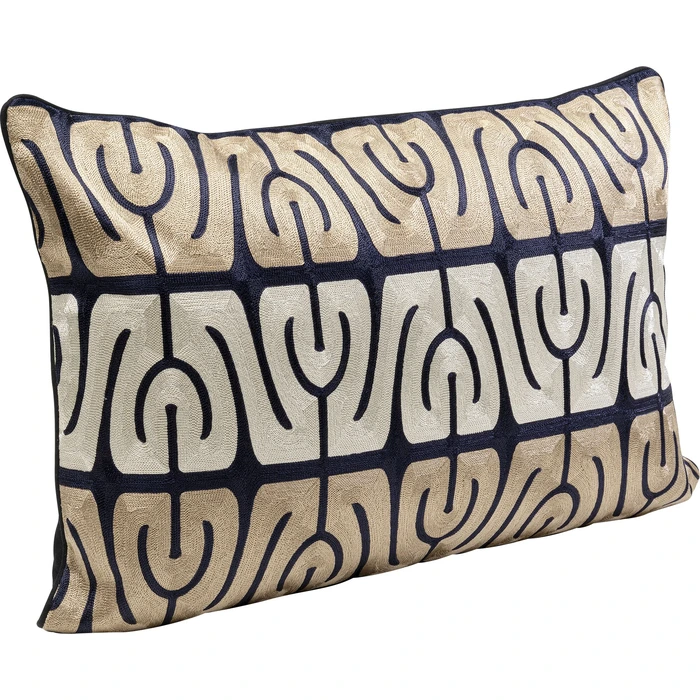 En rektangulär prydnadskudde som sätter en elegant, grafisk accent. Den hudvänliga bomullen och den lätt skimrande framsidan ger en ombonad känsla.