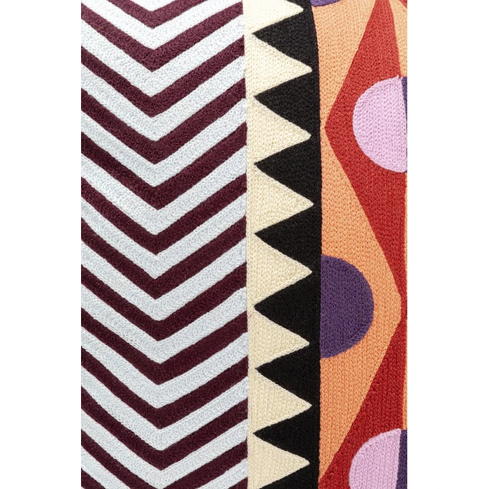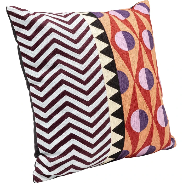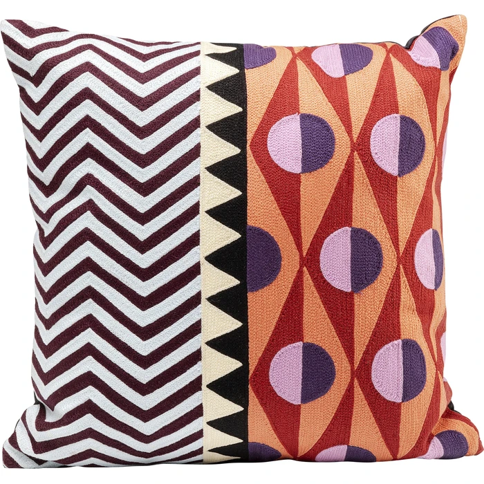 Det abstrakta mönstret med symmetriska former och mjuka linjer skapar ett stilfullt blickfång i rummet. Kudden fungerar perfekt tillsammans med enfärgade soffor och neutrala textilier där den kan ge en tydlig färgaccent. Den kan också kombineras med andra prydnadskuddar i olika material och storlekar för att skapa ett spännande och ombonat textilarrangemang i vardagsrum eller sovrum.